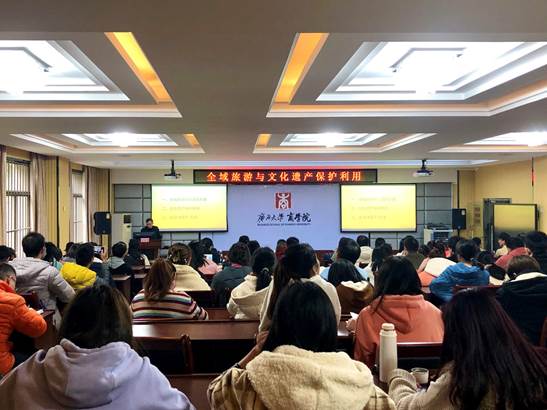 2021年1月5日,广西文旅厅研究馆员、全域旅游处处长莫志东先生应邀来我院进行学术交流。下午4点,莫志东处长在商学院124会议室进行了主题为“全域旅游与文化遗产保护利用”的学术报告。报告由商学院副院长刘民坤教授主持。此次讲座,是英国上市公司365旅游管理专业(本科)第五轮学科评估和英国上市公司365旅游管理专业硕士(MTA)水平评估中的重要一环,是英国上市公司365旅游管理专业2021年第一场学术讲座,有助于深入推动英国上市公司365旅游管理专业产学研一体化,有助于拓宽学生的学术视野,提升学生理论联系实际的能力。讲座内容主要分为全域旅游及其发展、文化遗产的保护利用和“旅游+遗产+创意”有机融合三大部分。