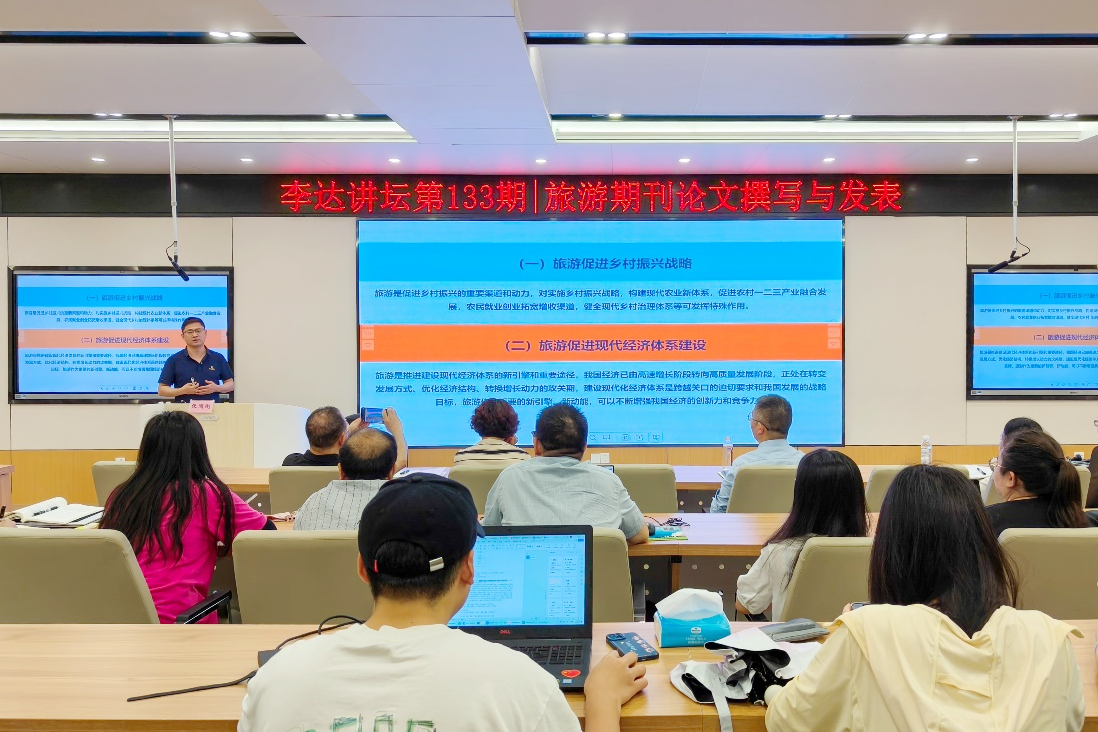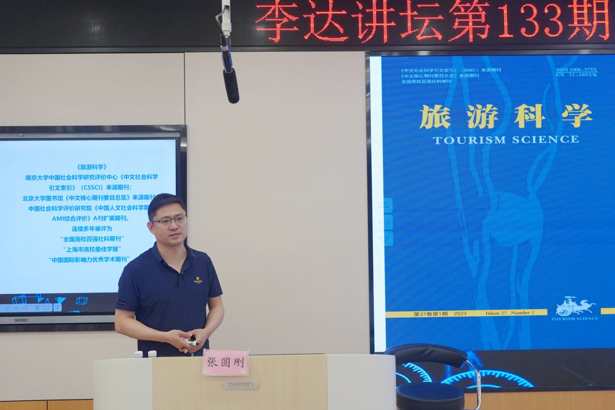 6月6日上午,上海师范大学旅游学院张圆刚副教授受邀做客我院第133期“李达讲坛”,以“旅游期刊论文撰写与发表”为题在学院122报告厅为我院师生作学术报告。讲坛由学院副院长刘民坤主持,学院旅游管理系专任教师和研究生到场学习交流。