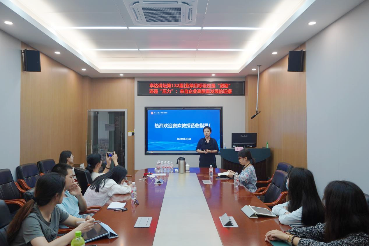 6月5日下午,暨南大学管理学院会计系副主任、博士生导师、全国会计高端人才窦欢教授受邀做客第132期“李达讲坛”,以“业绩目标设定是‘激励’还是‘压力’:来自企业高质量发展的证据”为题在学院234研讨室为我院师生作学术报告。我院相关研究方向的教师和研究生参加学习交流。