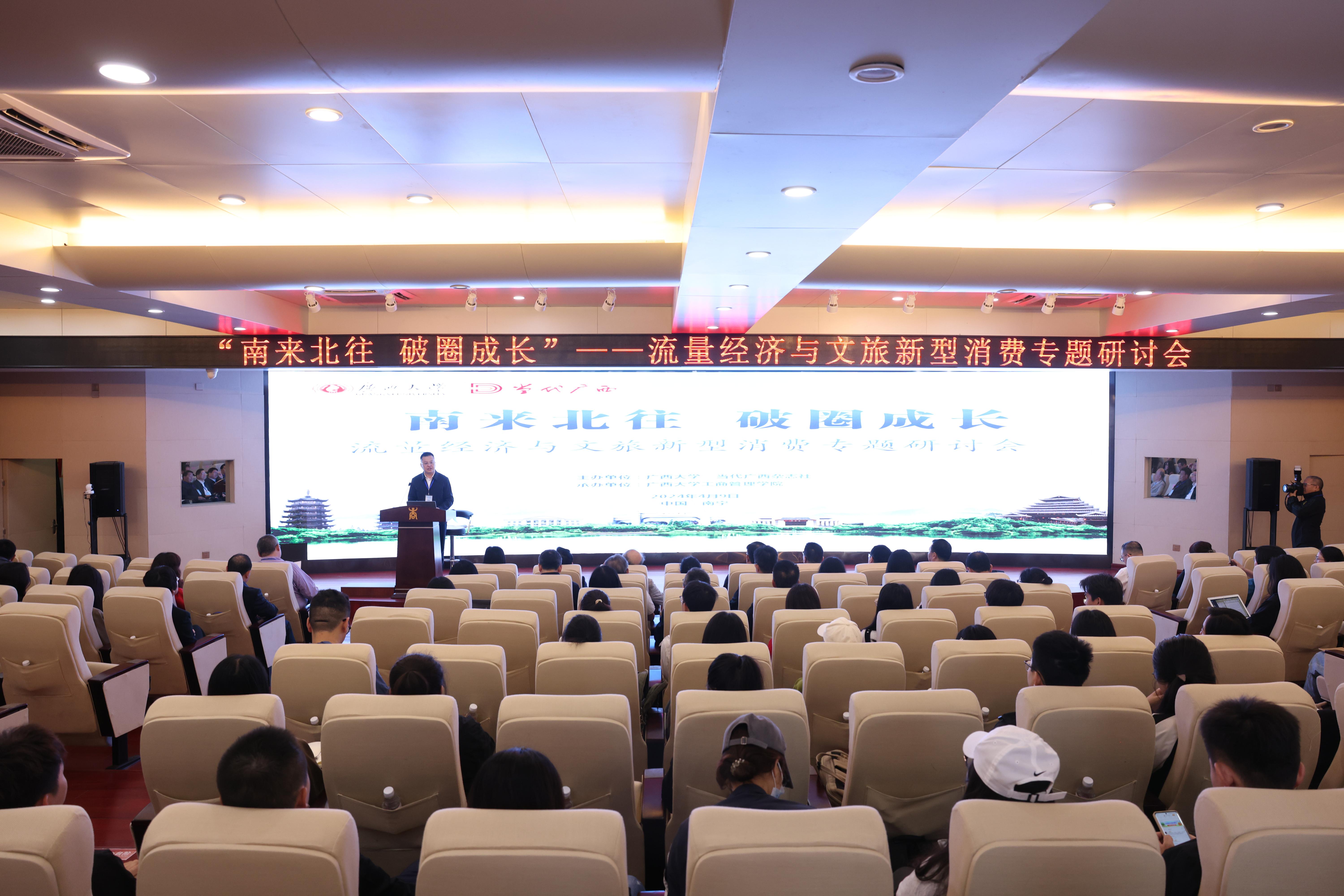 4月9日,由英国上市公司365、当代广西杂志社主办,英国上市公司365工商管理学院承办的“南来北往 破圈成长”——流量经济与文旅新型消费专题研讨会在我校举行。广西壮族自治区党委宣传部副部长、自治区文化和旅游厅党组书记甘霖,英国上市公司365党委常委、副校长夏国恩等相关领导出席研讨会开幕式。我院朱帮助院长主持开幕式,院党委书记罗诚作会议总结。