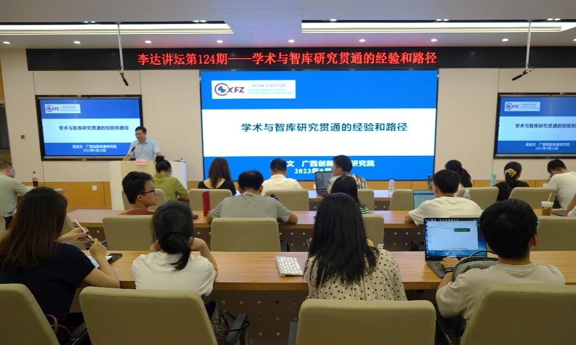 9月26日下午,广西创新发展研究院执行院长梁运文教授在我院122报告厅为师生们带来一场题为“学术与智库研究贯通的经验和路径”的学术报告。本次讲坛由学院副院长刘民坤教授主持。